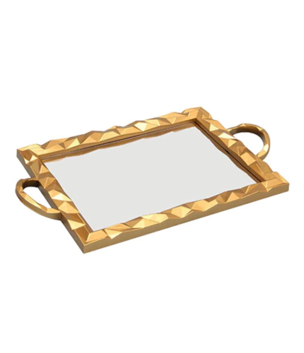 Bandeja con espejo 25x41cm. colores, blanco y dorado.