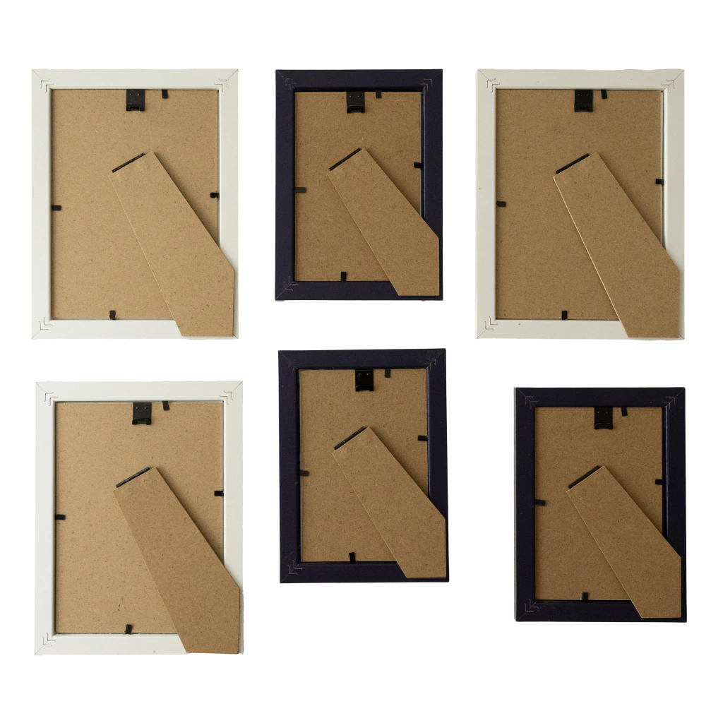 El set de 6 portarretratos de madera tipo box es la opción perfecta para enmarcar tus recuerdos más preciados. Este elegante set incluye 3 portarretratos blancos para fotos de 10x15 cm y 3 portarretratos azules para fotos de 13x18 cm, permitiéndote exhibir tus imágenes con un estilo moderno y sofisticado.