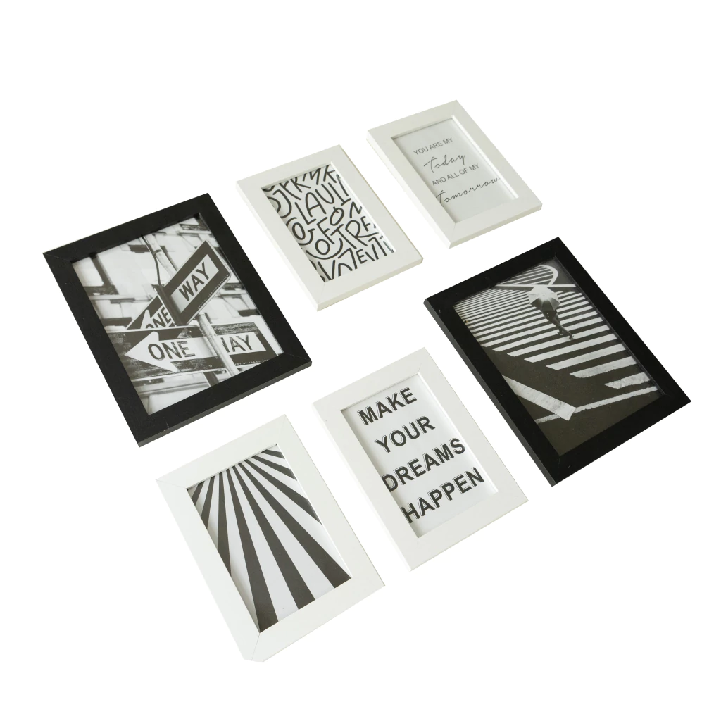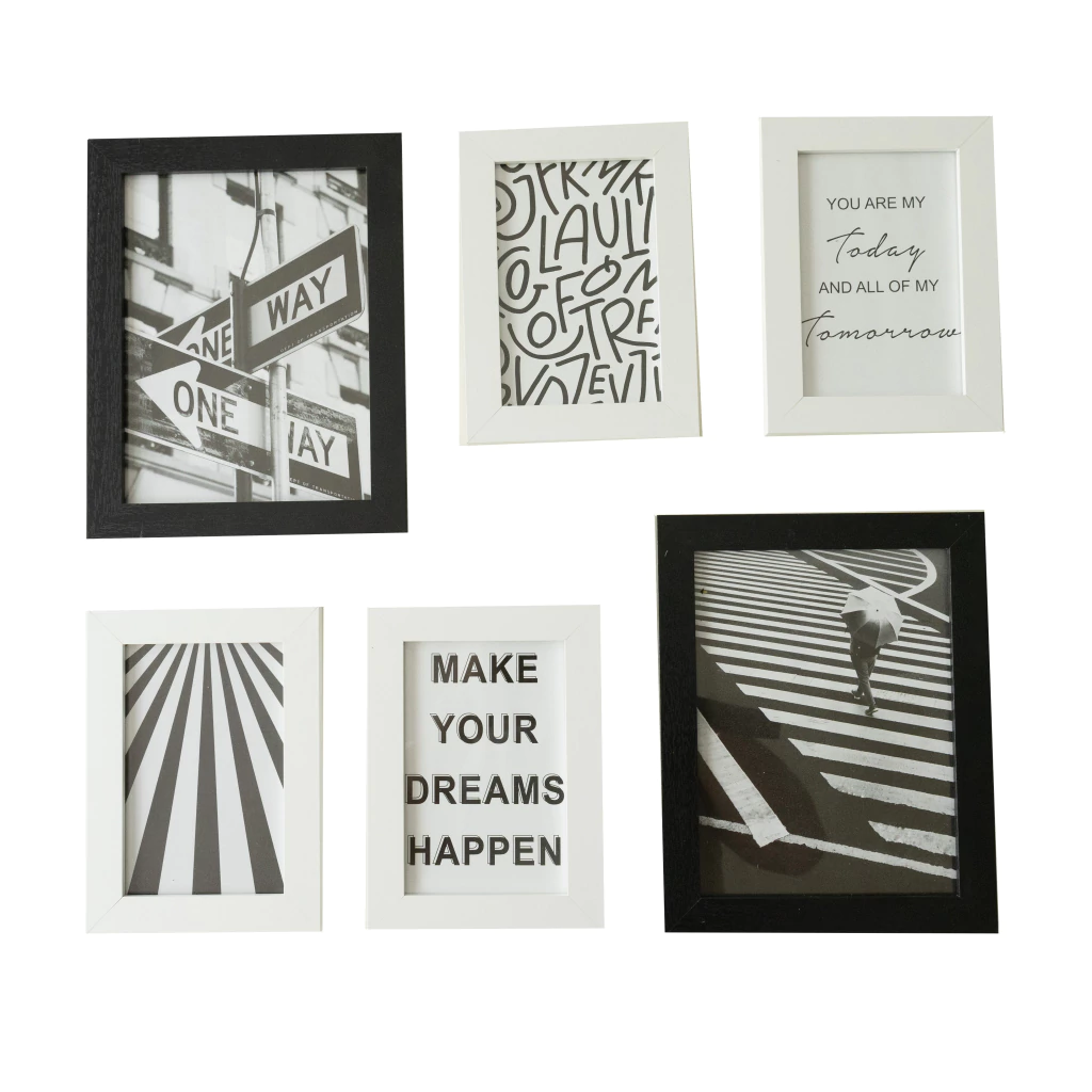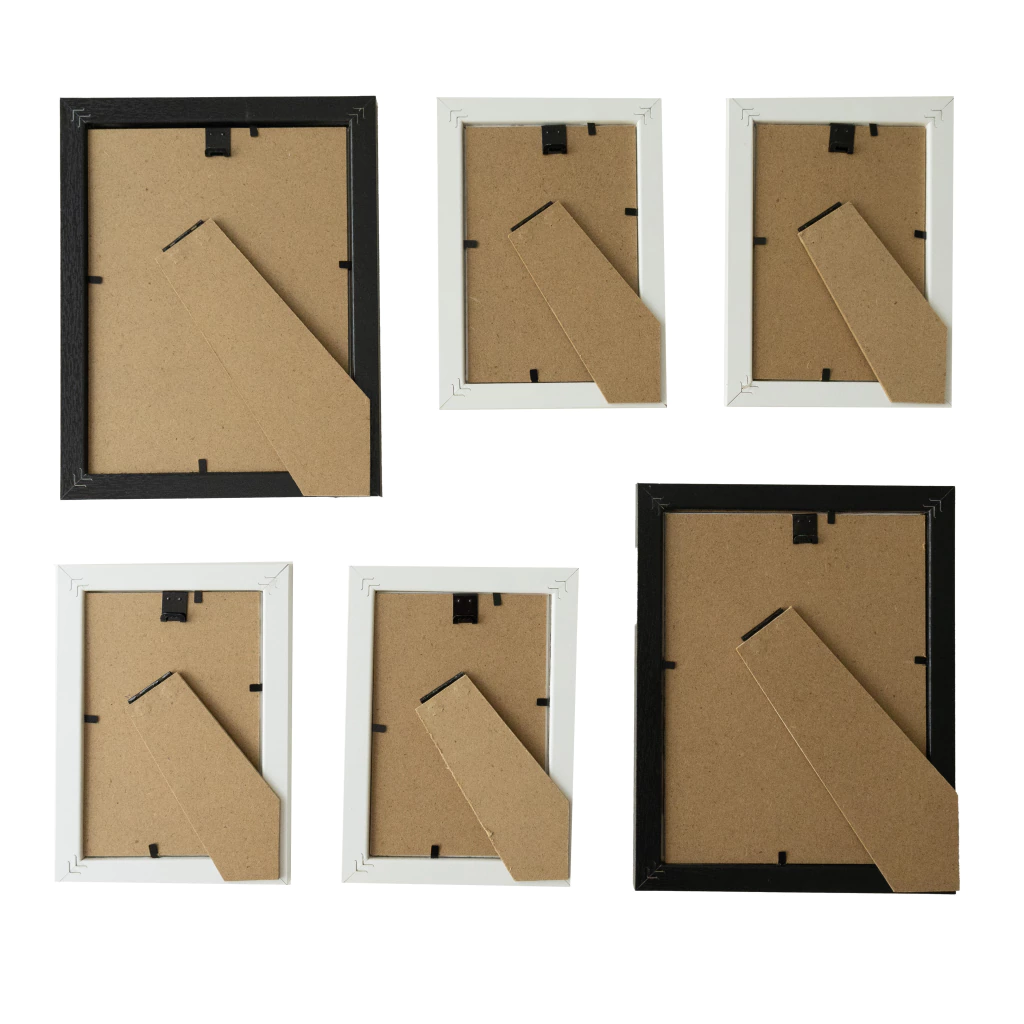 Dimensiones: 4 portarretratos de 10x15 cm (blanco) y 2 portarretratos de 15x20 cm (negro)