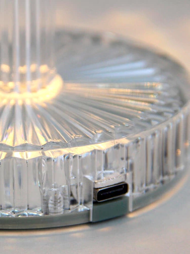 Lámpara Led con sensor táctil en la parte inferior, 3 intensidades de luz diferentes, batería recargable. Incluye: Cable USB tipo C, 0,80 cm de longitud.